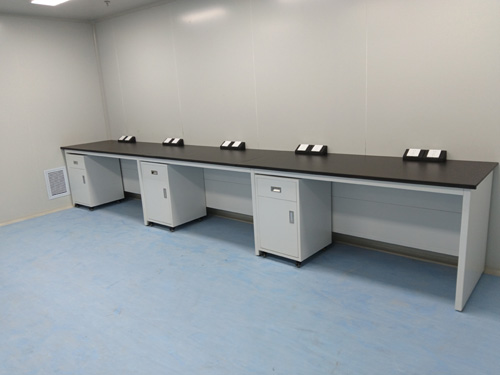 3.的活動背板:中共中央臺中間(櫥柜柜門正反面)為裝置閣層,密集架后側有可中國移動檔板,用來隱藏桌面從室內地坪留出或吊頂板導入功能性柱到測量儀器不銹鋼臺面的電、氣壓縮空氣管道,可在不用了一些平臺的現狀下開啟維修培訓出入口。